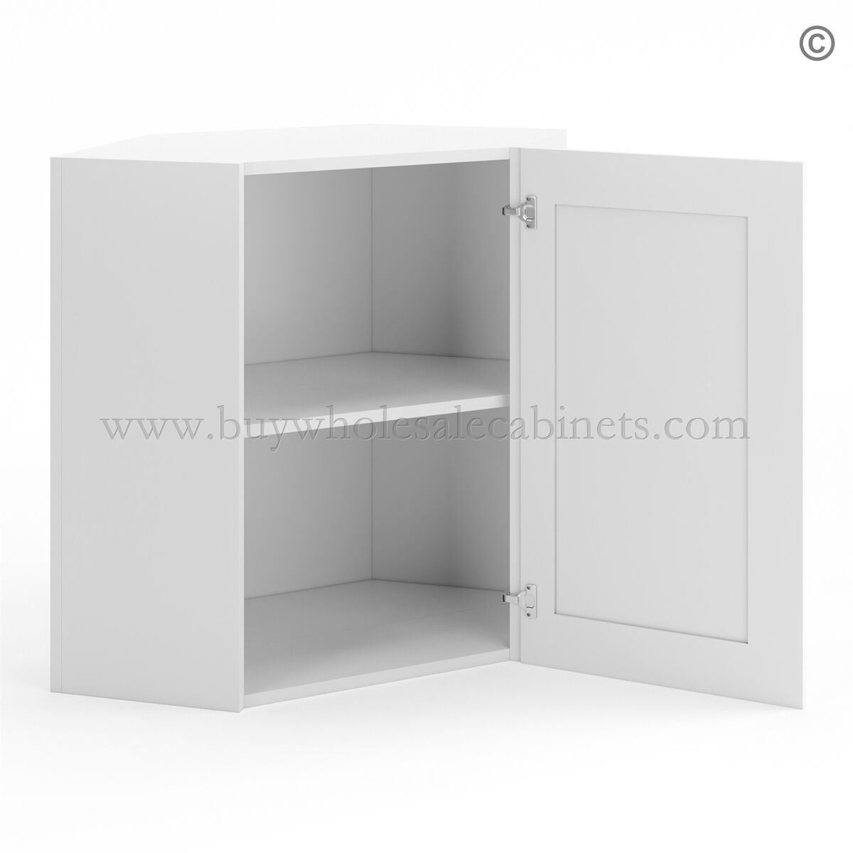 Frameless White Deco 24″ Wide Wall Diagonal Door – 1 Door, 1 Shelf