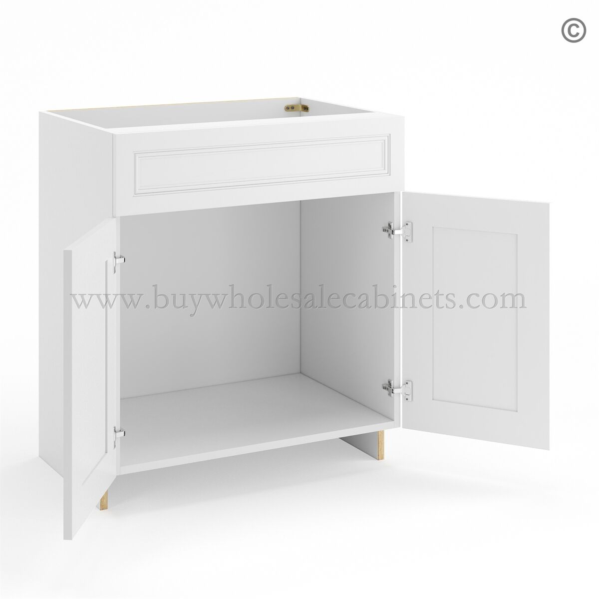 Frameless White Deco Vanity Sink Base Cabinet – 2 Doors And 1 False Drawer