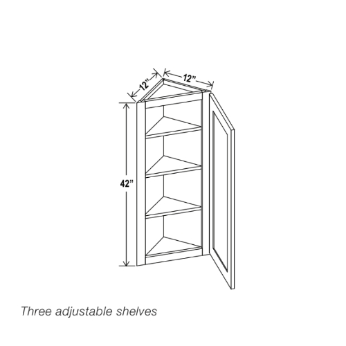 Our Gray Shaker 12 W Angle Wall Cabinet is 12″ wide 12″ deep, and available in 3 different heights. (30″, 36″, 42″).