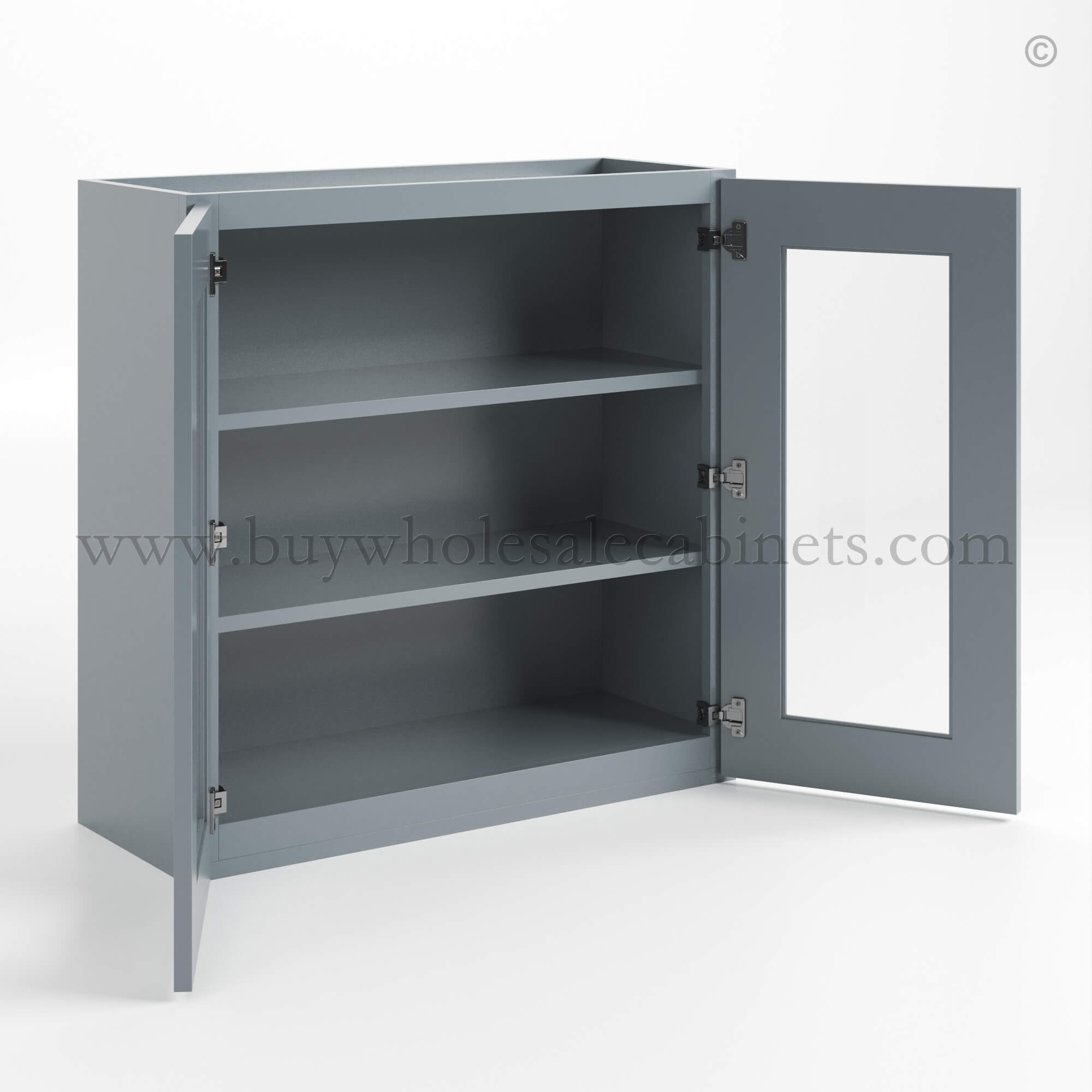Gray Shaker 30 H Double Door Wall Cabinet with Glass Doors