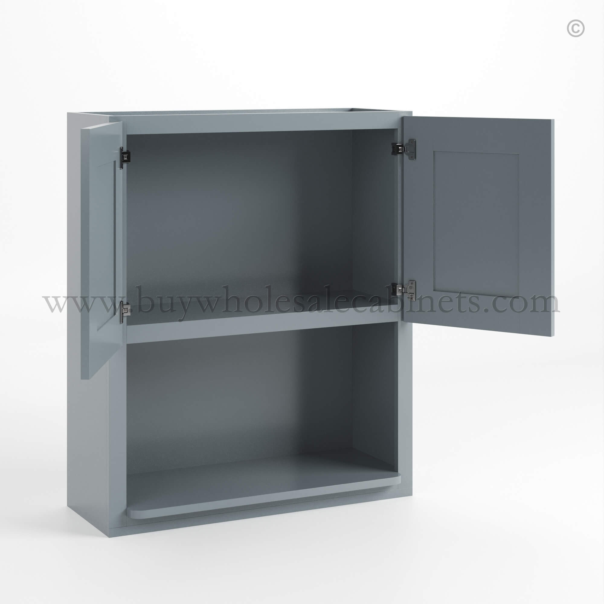 Buy Wholesale Cabinets Gray Shaker Microwave Wall Cabinet is available in 3 different sizes.