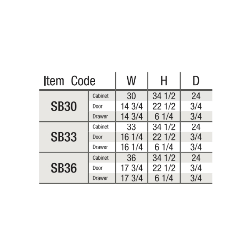 | Size | 30″W x 34-1/2″H x 24″D, 33″W x 34-1/2″H x 24″D, 36″W x 34-1/2″H x 24″D |