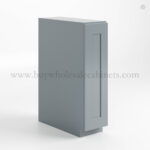 Our Gray Shaker Spice Pull Base Cabinet is 34.5″ tall, 24″ deep, and available in 2 widths (6″, 9″).