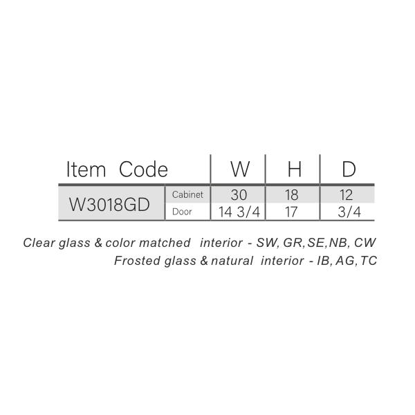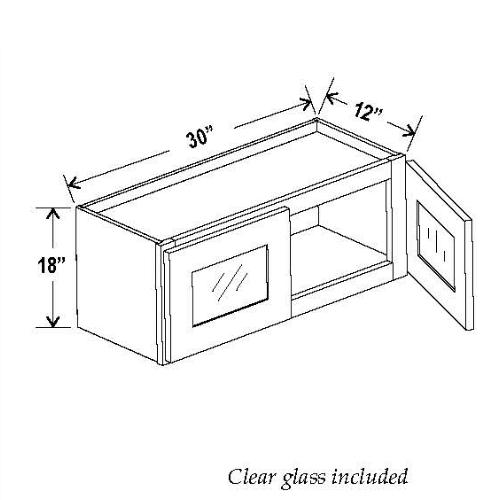 Our Navy Blue Shaker 18 H Double Door Wall Cabinet with Glass Doors is 30″ wide, 18″ tall, and 12″ deep.