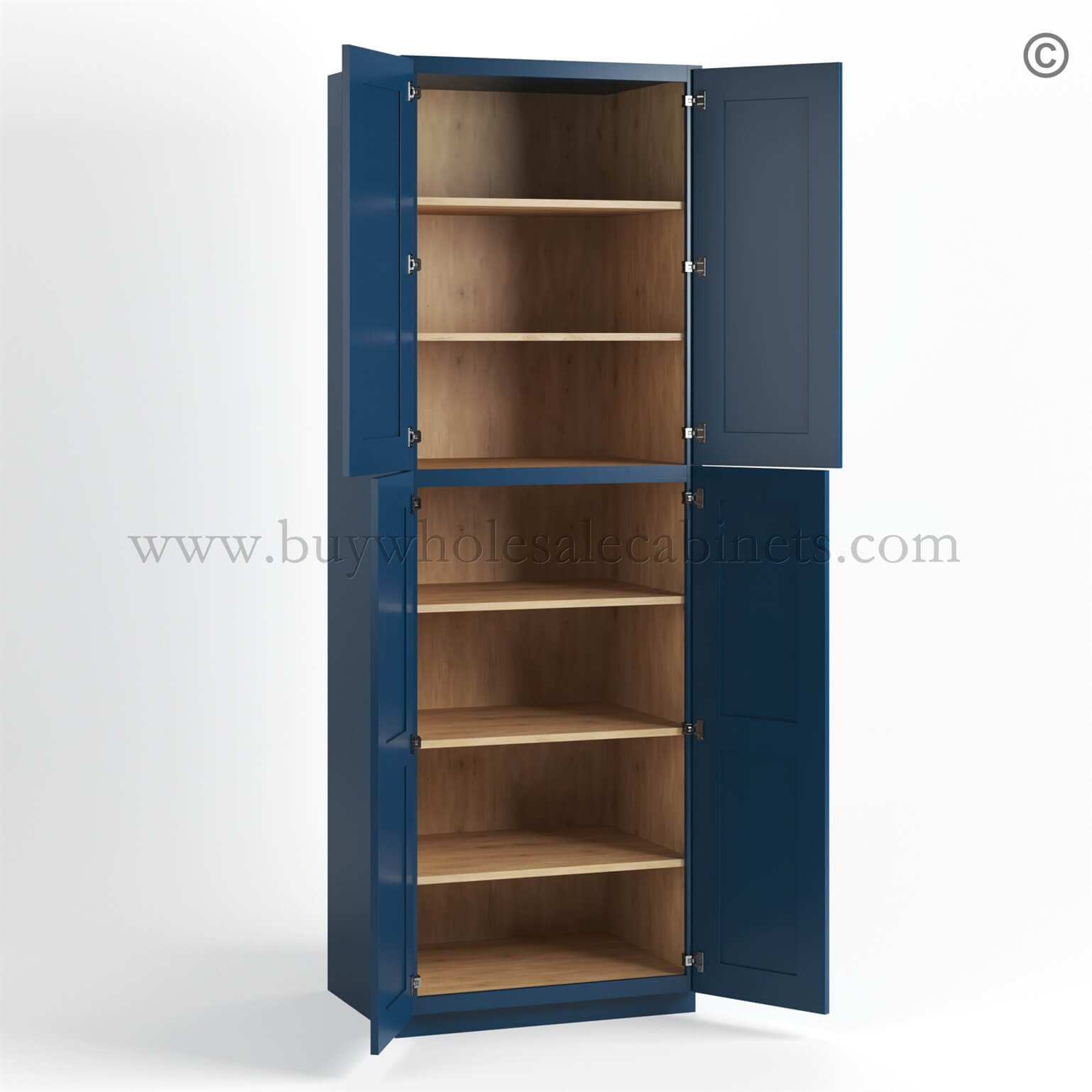 Navy Blue Shaker 30 W Two Double Door Utility Pantry Cabinet