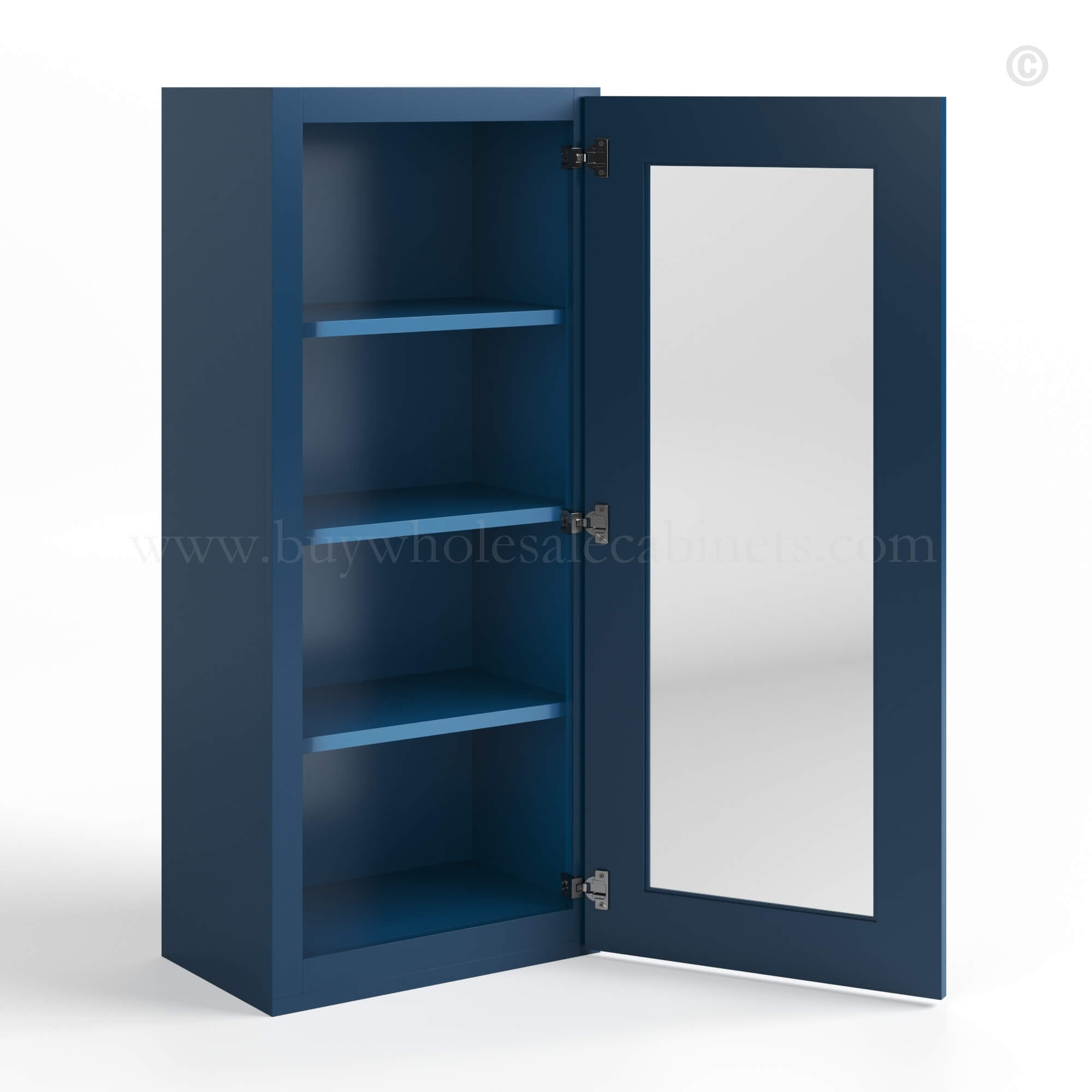 Buy Wholesale Cabinets Navy Blue Shaker 42″ H Single Door Wall Cabinet with Glass Door is available in 2 sizes.