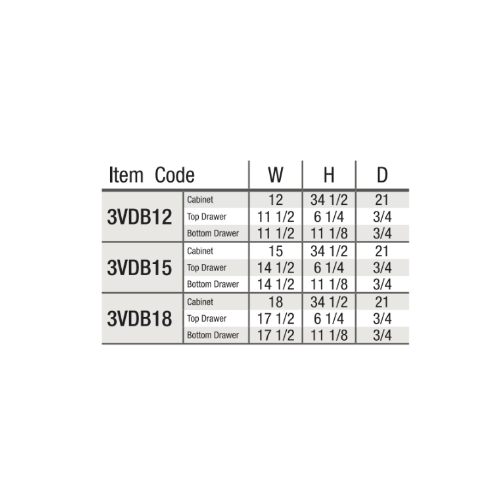 | Size | 12″W x 34 1/2″H x 21″D, 15″W x 34 1/2″H x 21″D, 18″W x 34 1/2″H x 21″D, 21″W x 34 1/2″H x 21″D, 24″W x 34 1/2″H x 21″D |