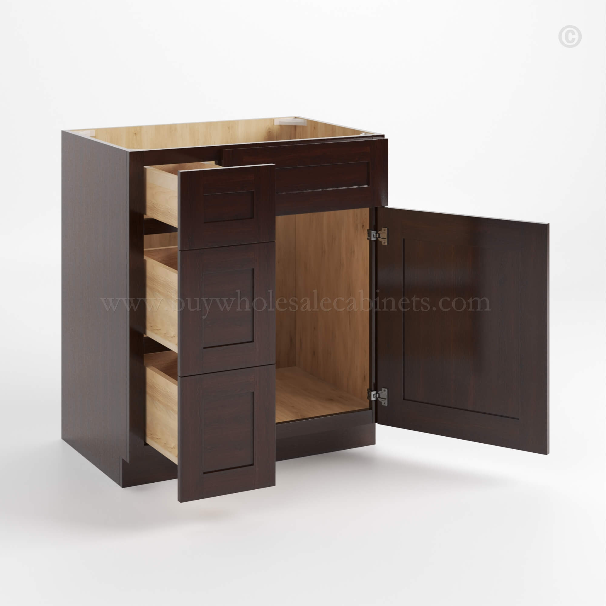 Shaker Espresso Vanity Three Drawer Base Cabinet
