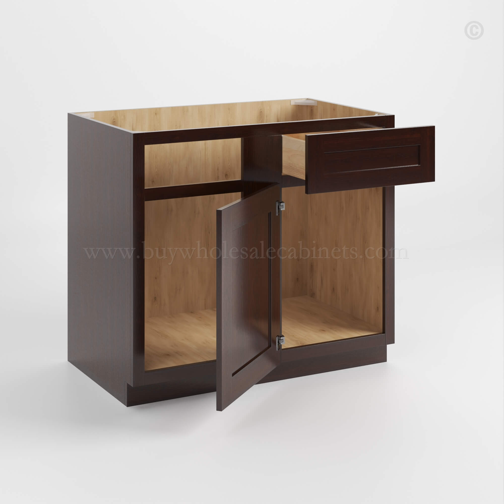 Shaker Espresso Base Cabinet with Double Doors and Drawers