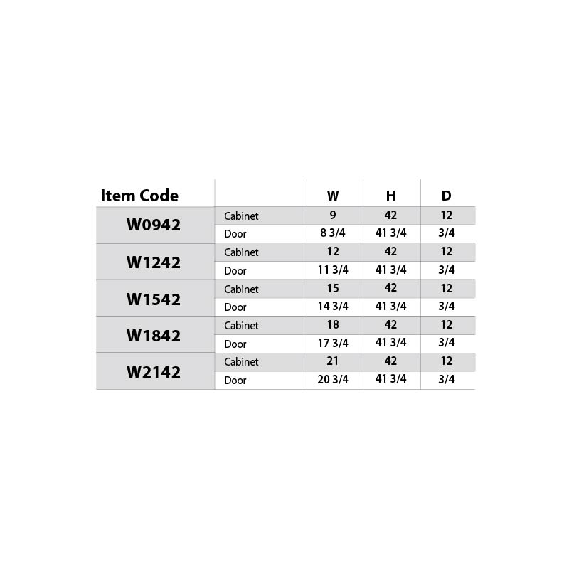 | Size | 09″W x 42″H x 12″D, 12″W x 42″H x 12″D, 15″W x 42″H x 12″D, 18″W x 42″H x 12″D, 21″W x 42″H x 12″D |