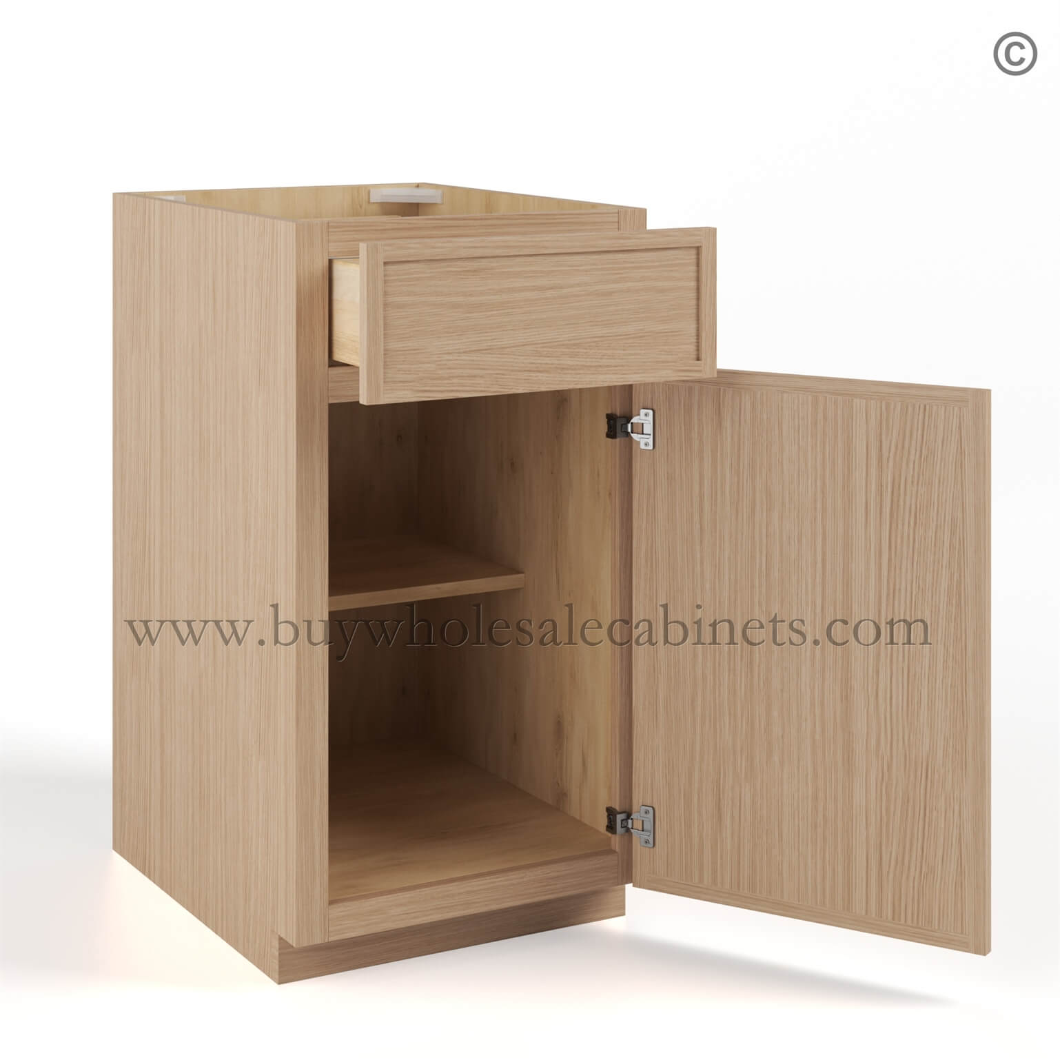 Buy Wholesale Cabinets Slim Oak Shaker Base Cabinet – Single Door & Single Drawer is available in 4 sizes.