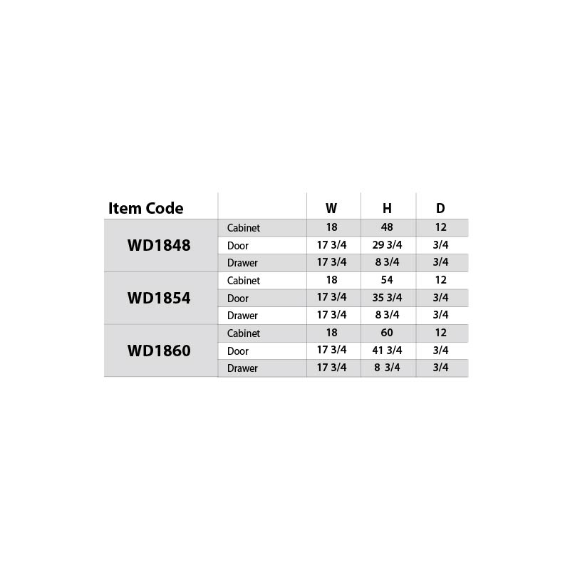 | Size | 18″W x 48″H x 12″D, 18″W x 54″H x 12″D, 18″W x 60″H x 12″D |