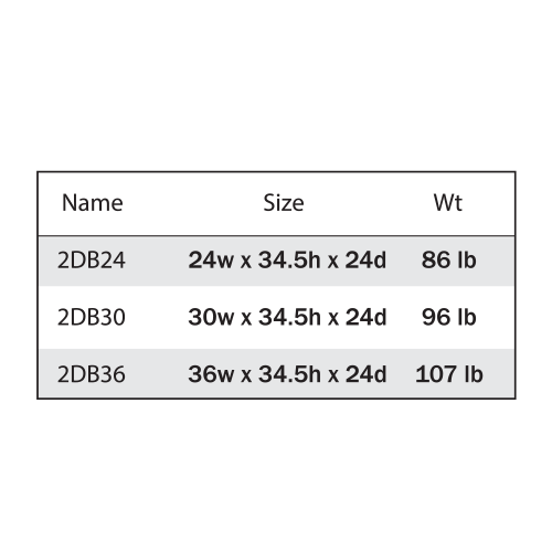 | Size | 24″W x 34 1/2″H x 24″D, 30″W x 34 1/2″H x 24″D, 36″W x 34 1/2″H x 24″D |