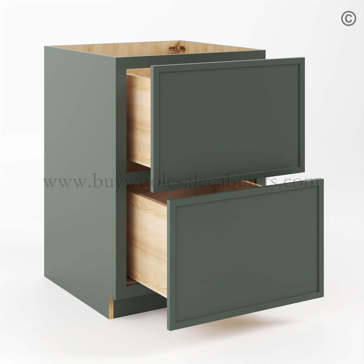 Slim Shaker Green Base Cabinet with 2 Drawers