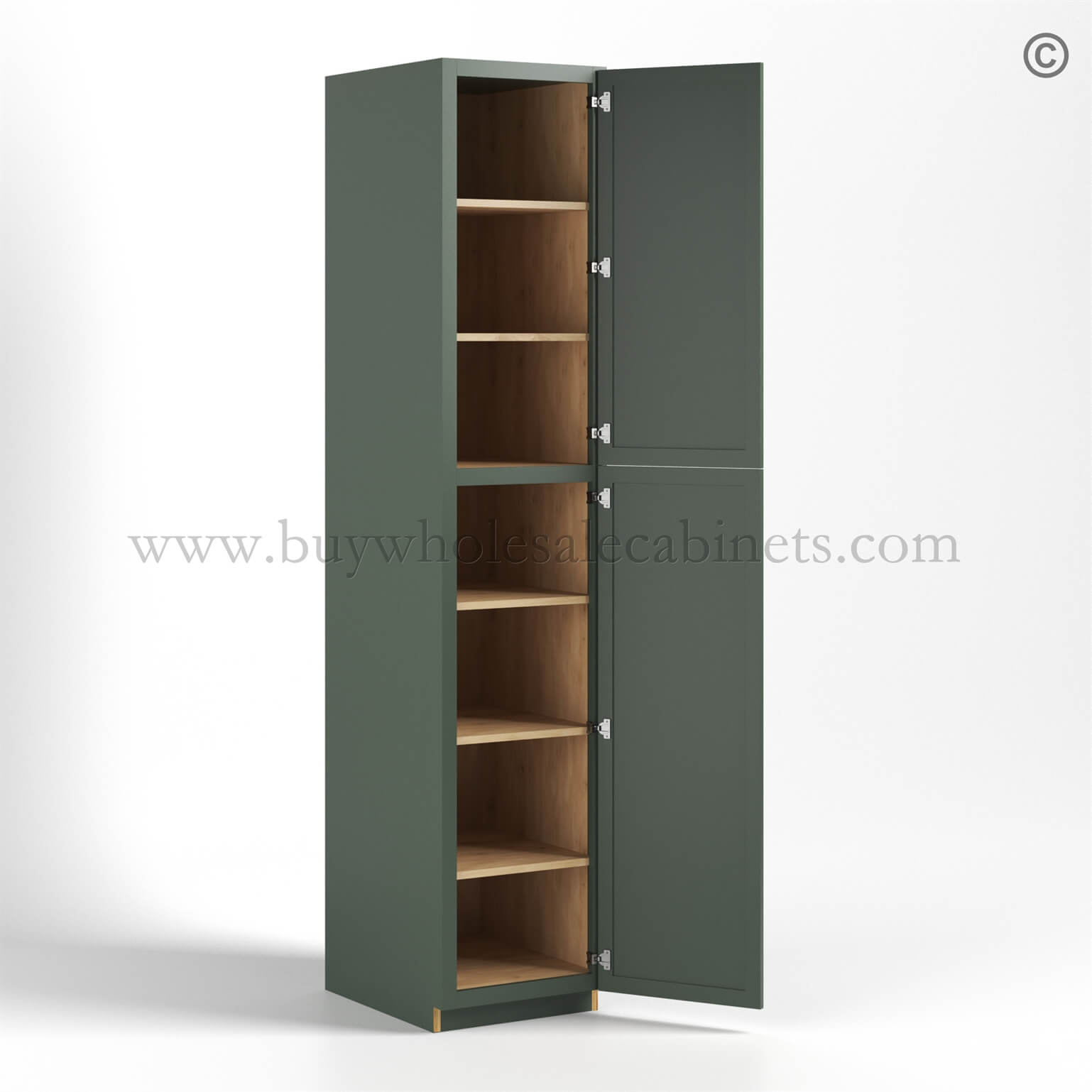 Slim Shaker Green Tall Pantry Cabinet 2 Doors