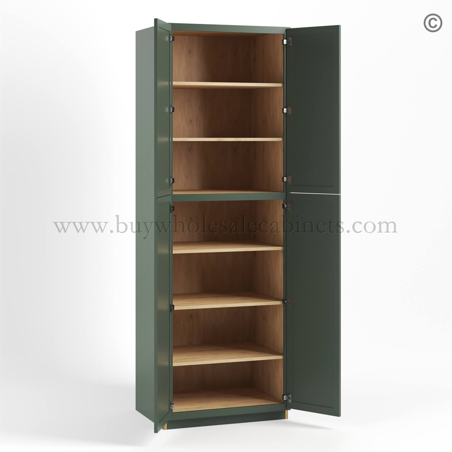 Our RTA Slim Shaker Green cabinets are finished with a high quality 7 layers of paint with a protective UV Coating and the side panels are also finished..
