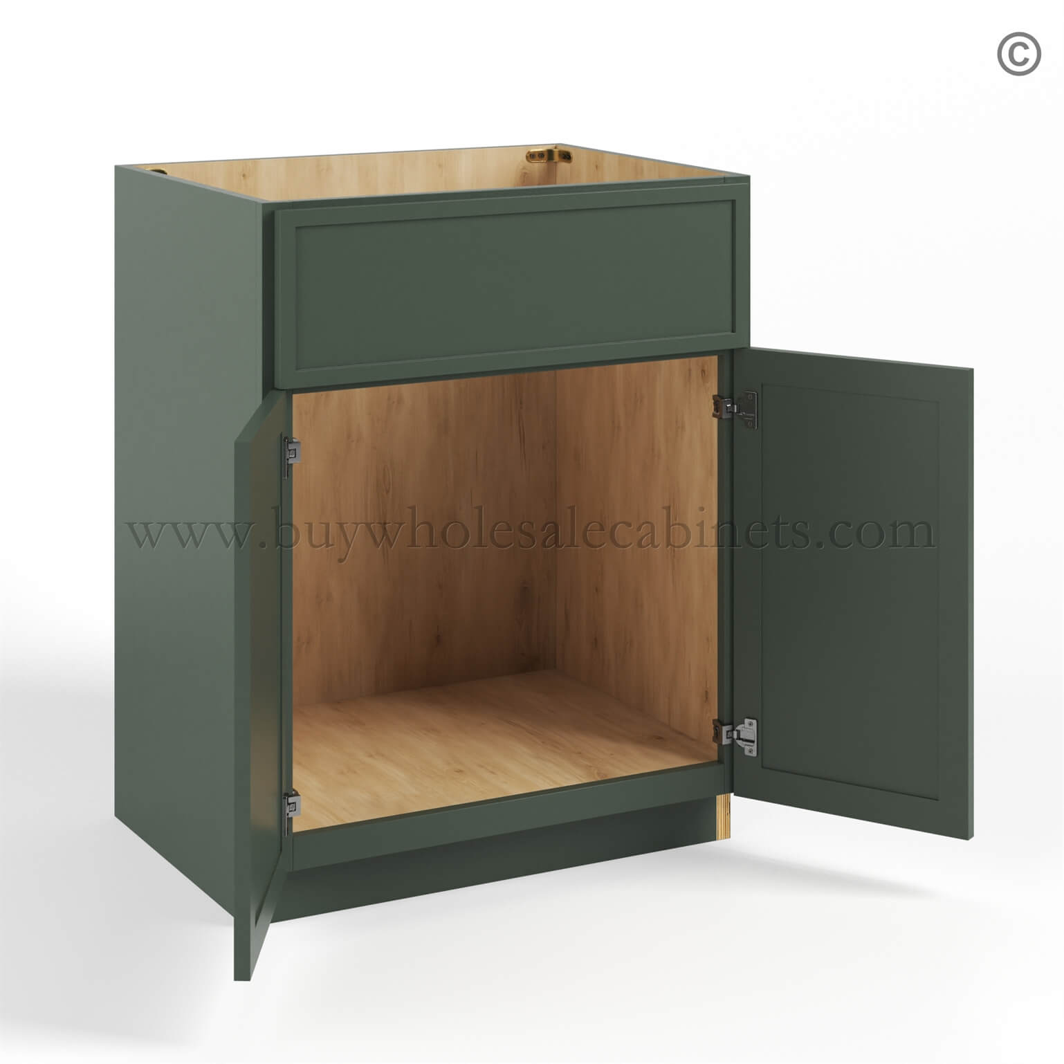 Our RTA Slim Shaker Green cabinets are finished with a high quality 7 layers of paint with a protective UV Coating and the side panels are also finished..
