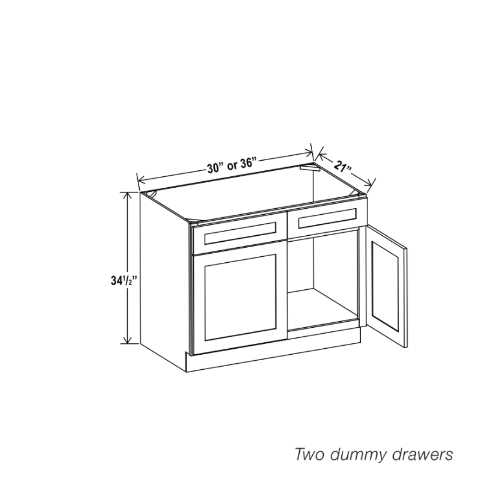 Our Treasure Chest Shaker Double Vanity Sink Base Cabinet is 34.5″ Tall, 21″ Deep, and available in 2 widths (30″, 36″). This cabinet features 2 dummy drawers. This cabinet Treasure Chest will fit perfectly in your kitchen or bathroom.
