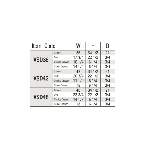 Cabinet Dimensions: 36″W x 34 1/2″H x 21″D, 42″W x 34 1/2″H x 21″D, 48″W x 34 1/2″H x 21″D