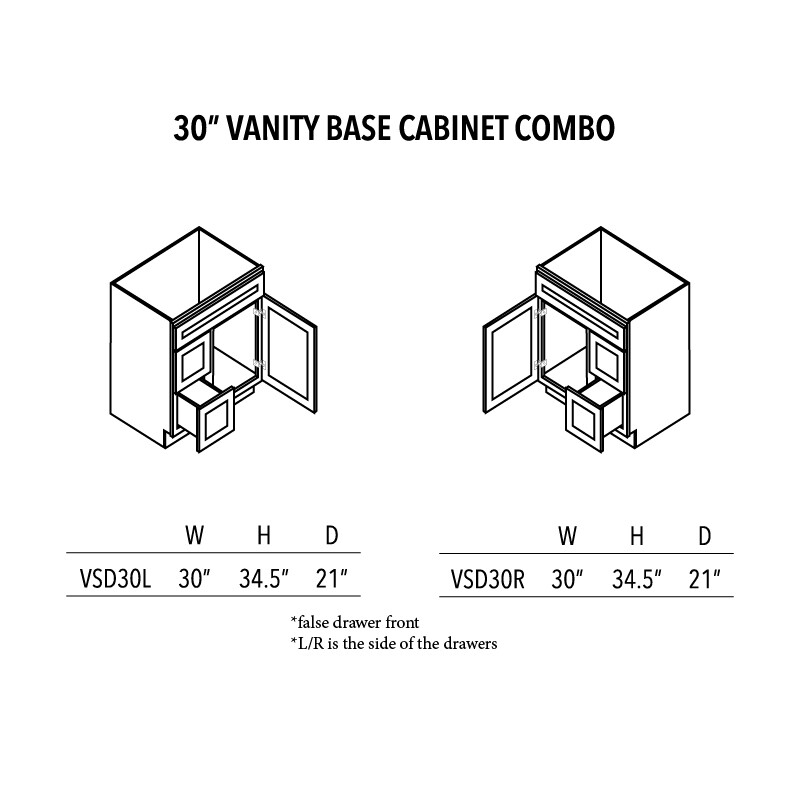 Unfinished Shaker 30″ Vanity Base Cabinet Combo