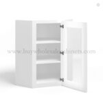 White Shaker 24″ Diagonal Corner Wall Cabinet with Glass Door