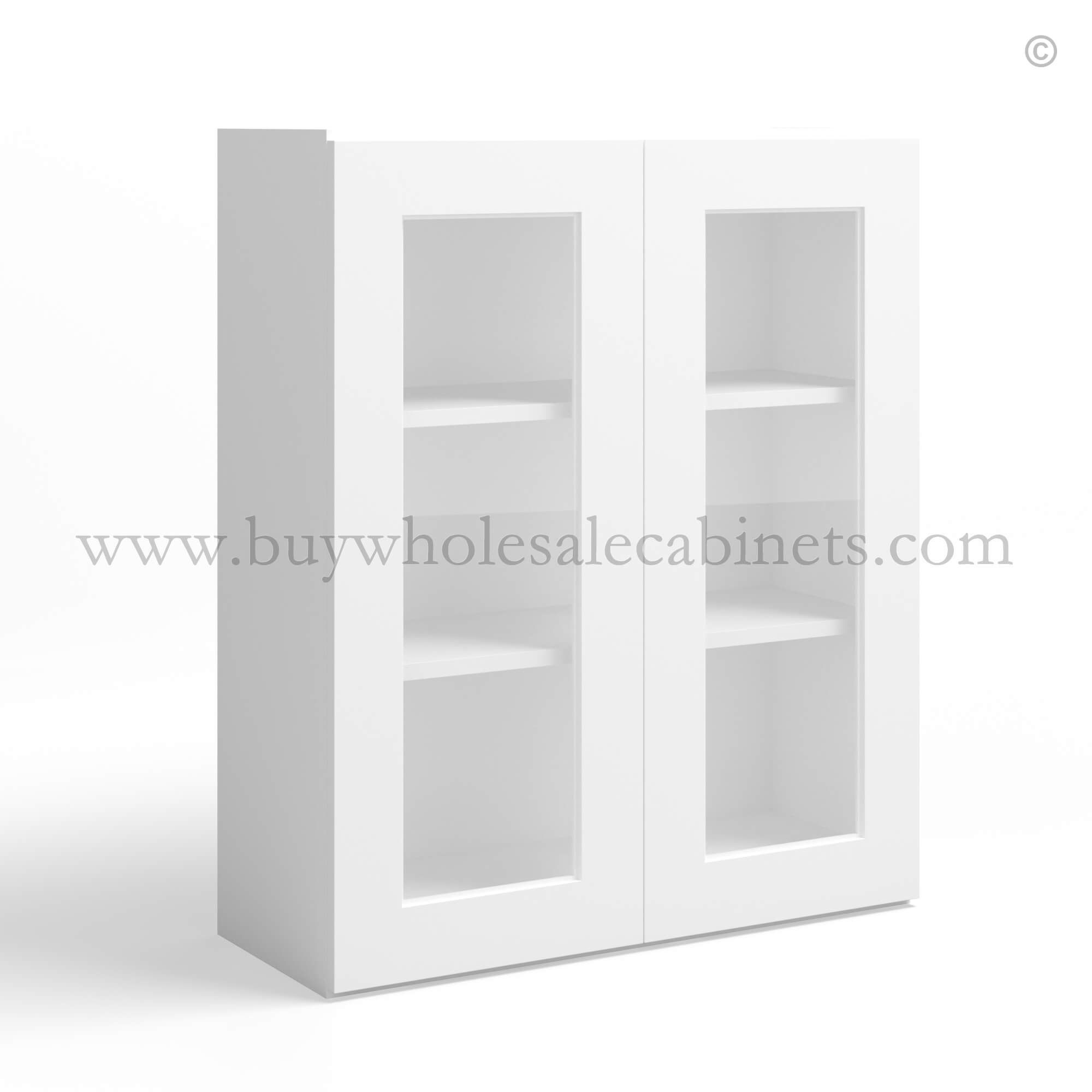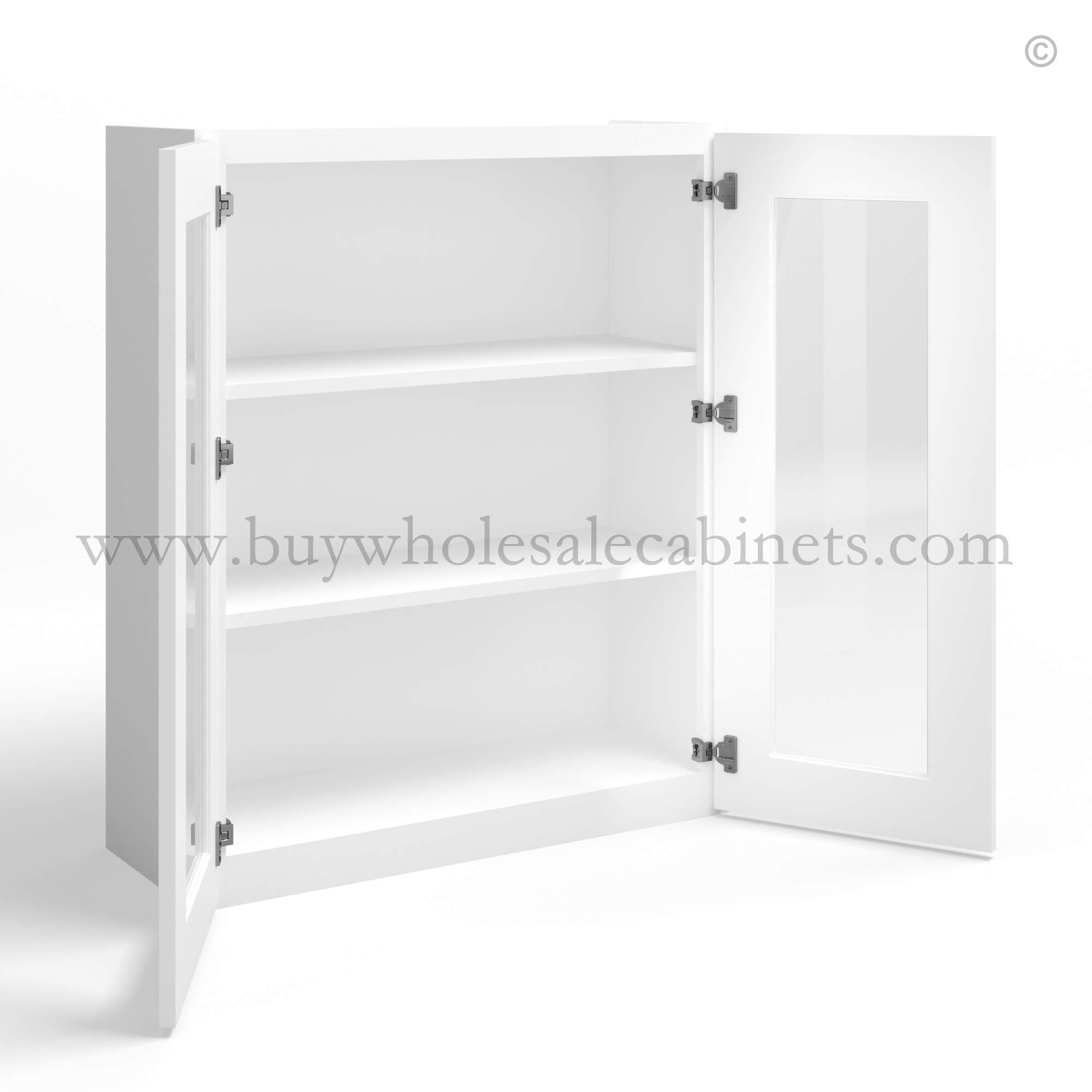 Buy Wholesale Cabinets White Shaker 36″ H Double Door Wall Cabinet with Glass Doors is available in 2 sizes.