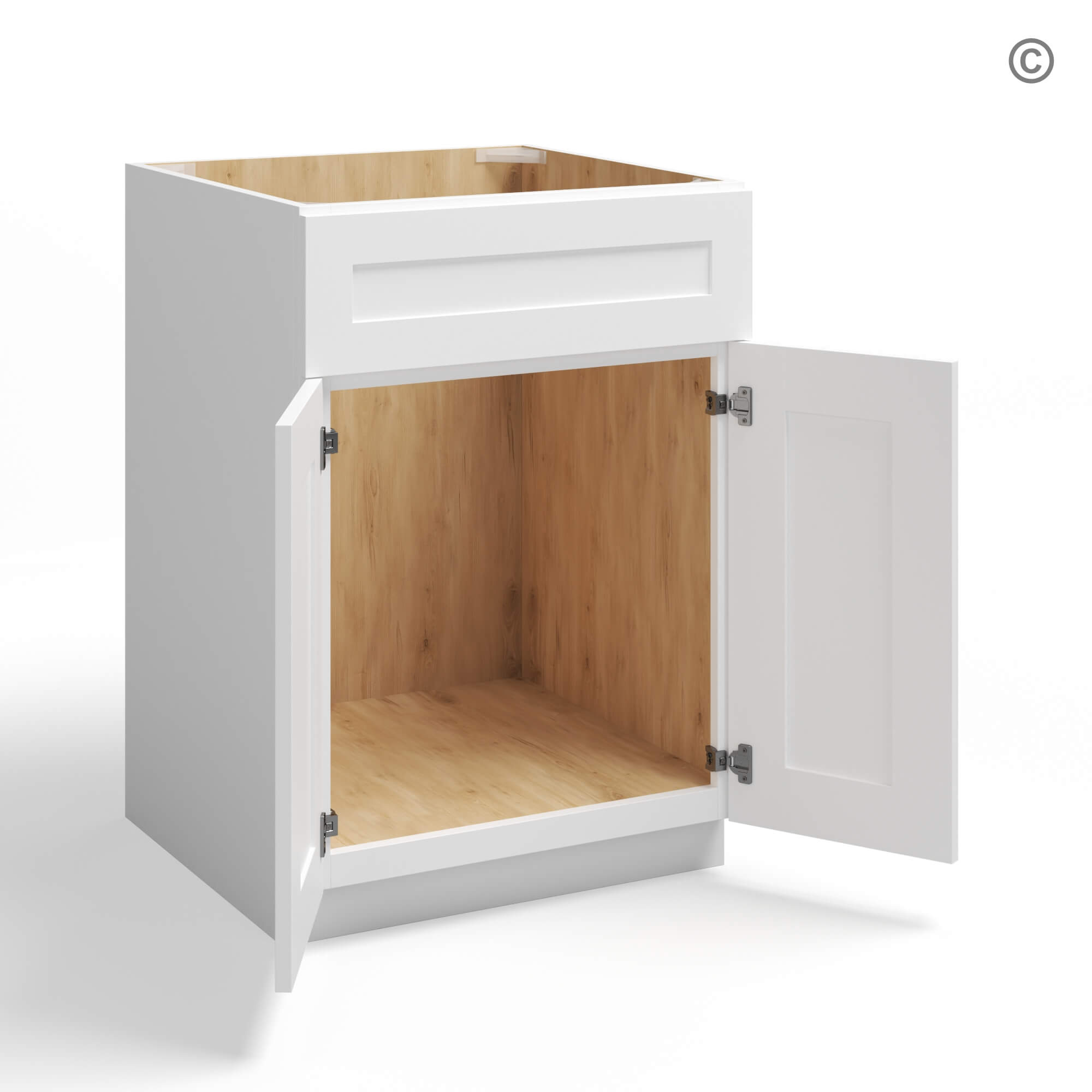 White Shaker Sink Base with Double Doors and False Drawer 27″