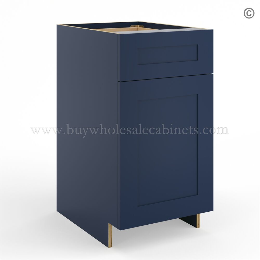 Frameless Oxford Blue Base Cabinet – 1 Drawer, 1 Door, 1 Shelf