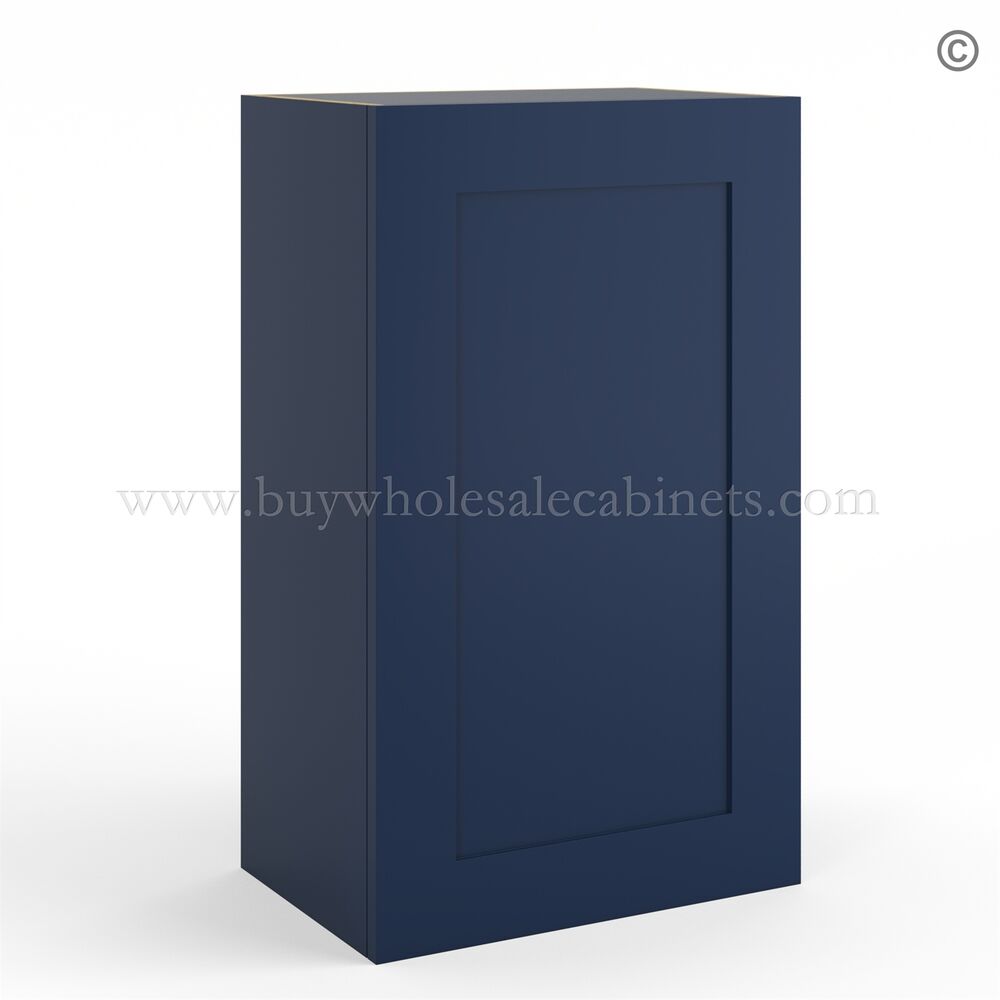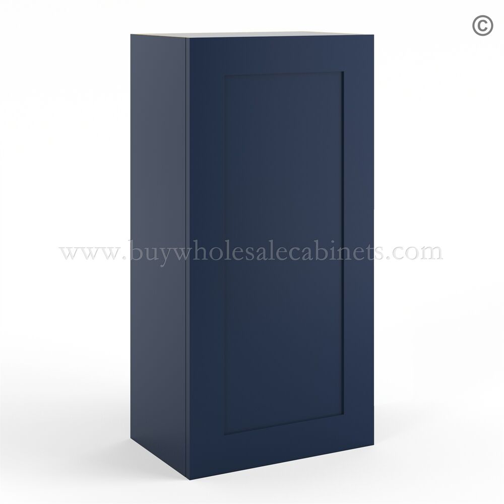 Frameless Oxford Blue 30″ Tall Deep Wall Cabinet – 1 Door 2 Shelves