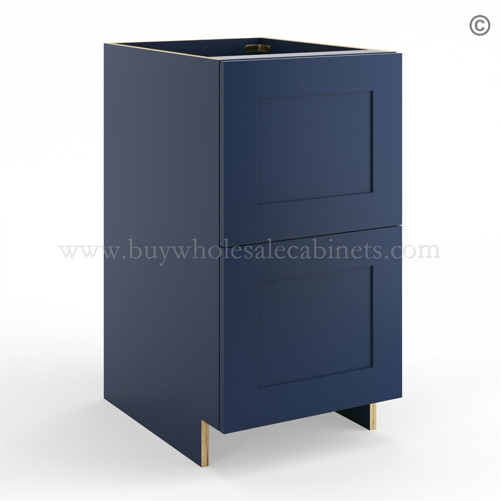 Frameless Oxford Blue Base Cabinet – 2 Drawer