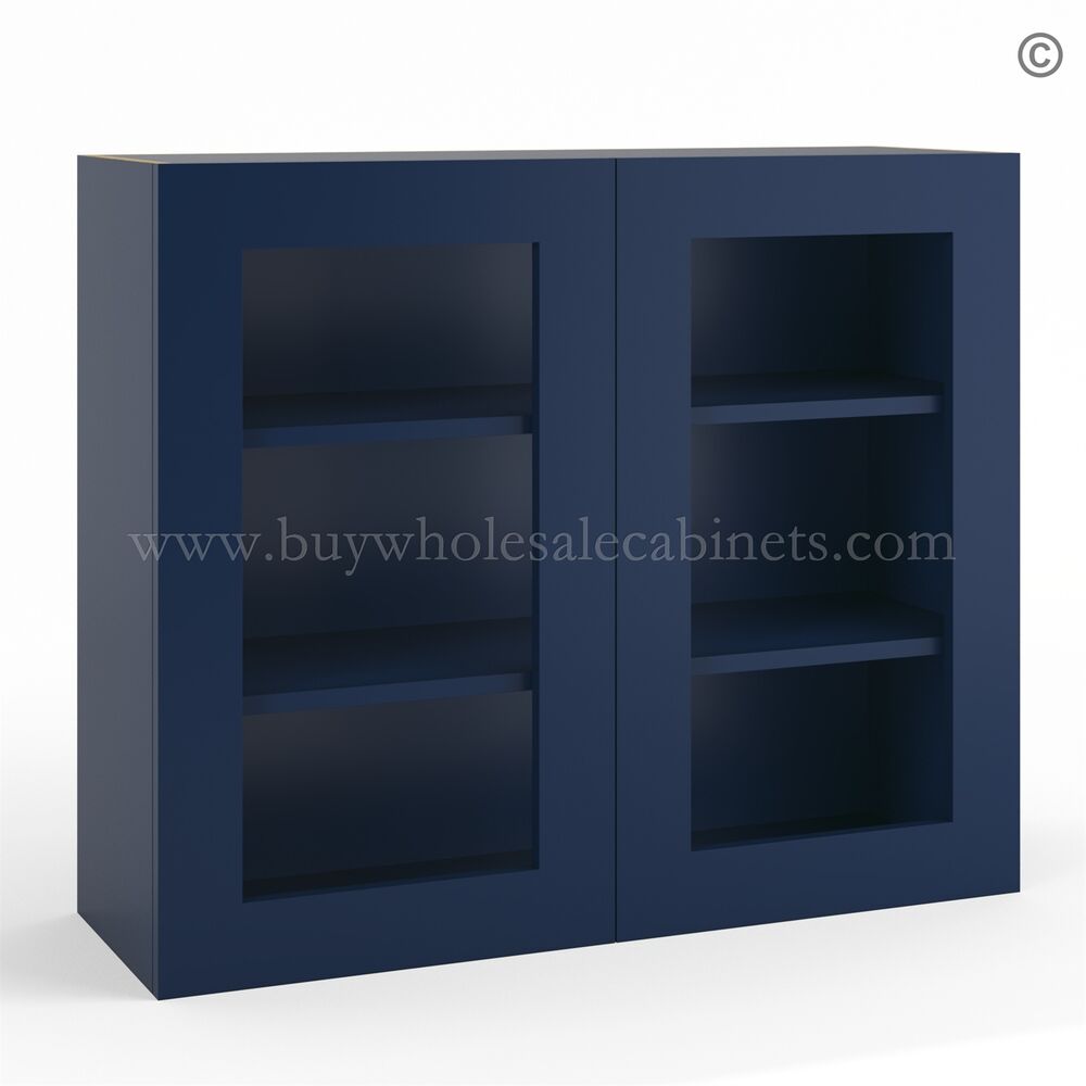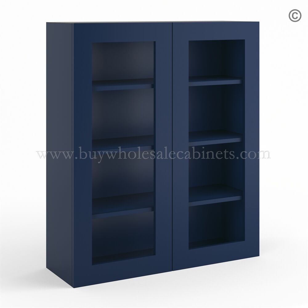 Frameless Oxford Blue Deep Wall Cabinet – 2 Doors No Shelf – 12″D, 36″W