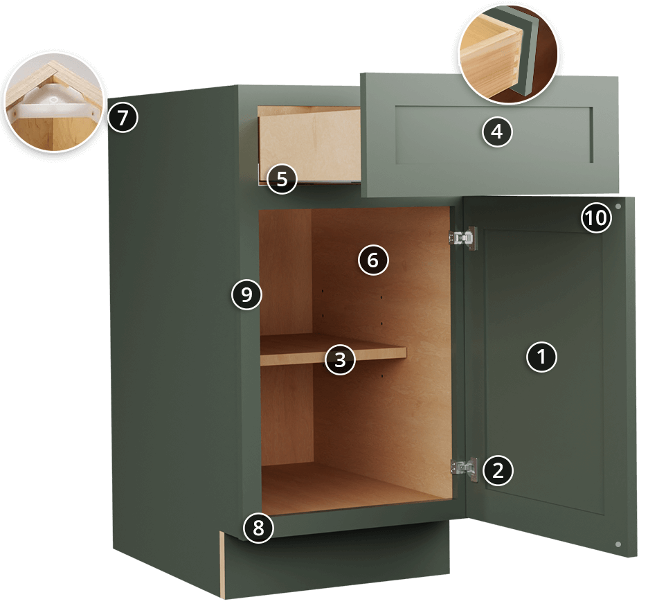 Arrives in 7-10 Business Days Note: Toe kicks are also required for all cabinets.RTA Green Shaker Cabinets