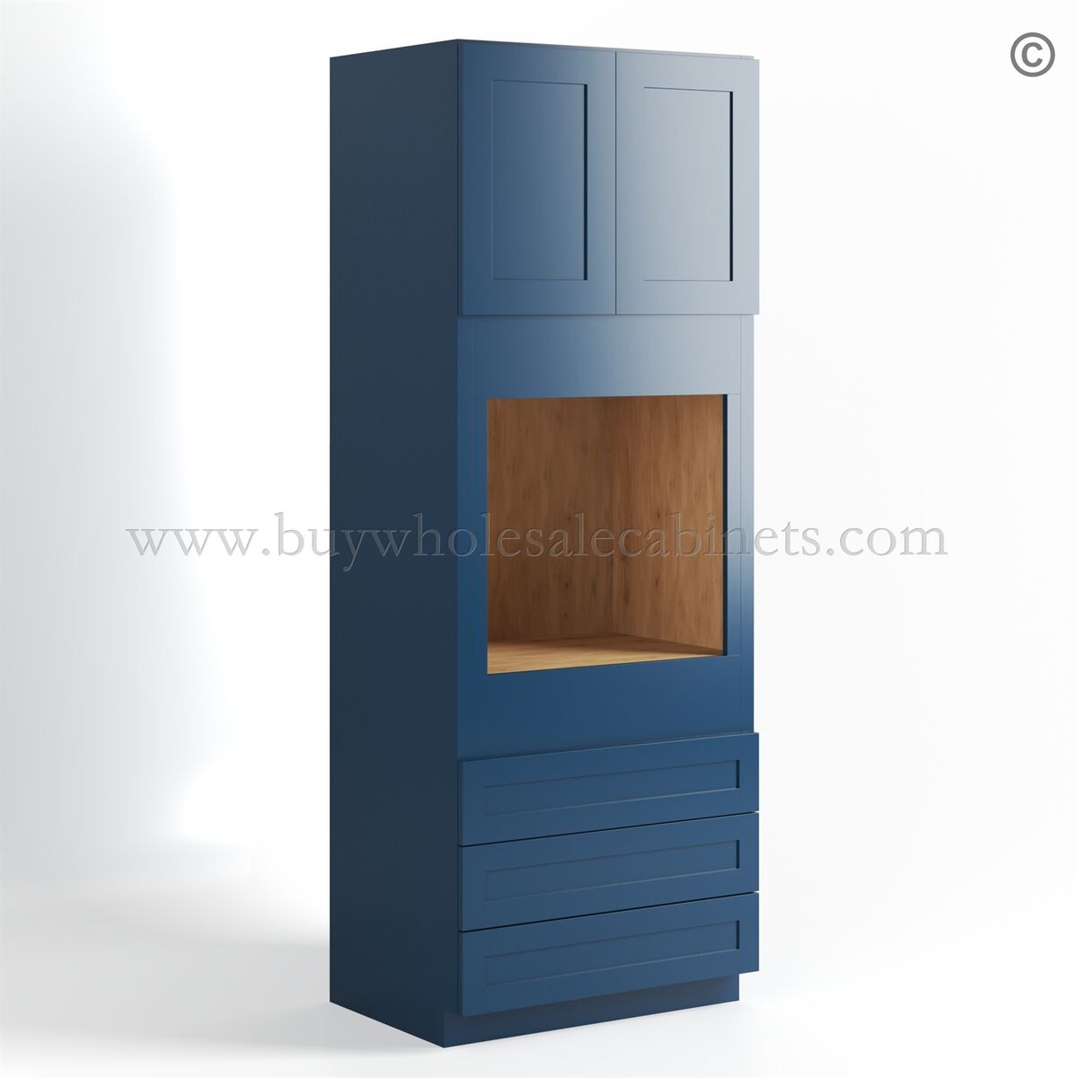 Navy Blue Shaker 30″ W Double Door Oven Pantry Cabinet with Three Drawers