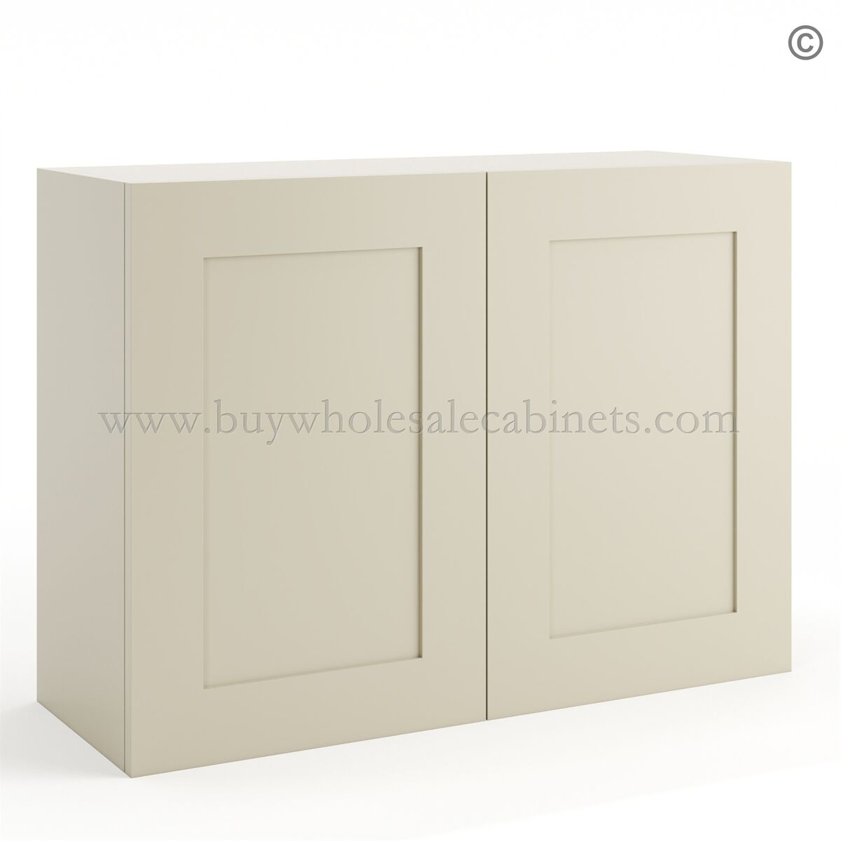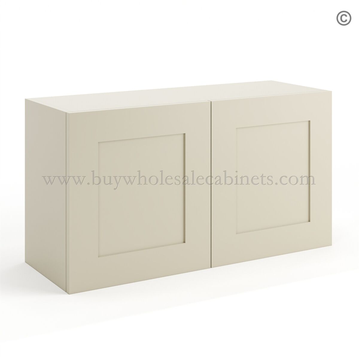 Frameless Ivory White Deep Wall Cabinet – 2 Doors No Shelf – 12″D, 30″W